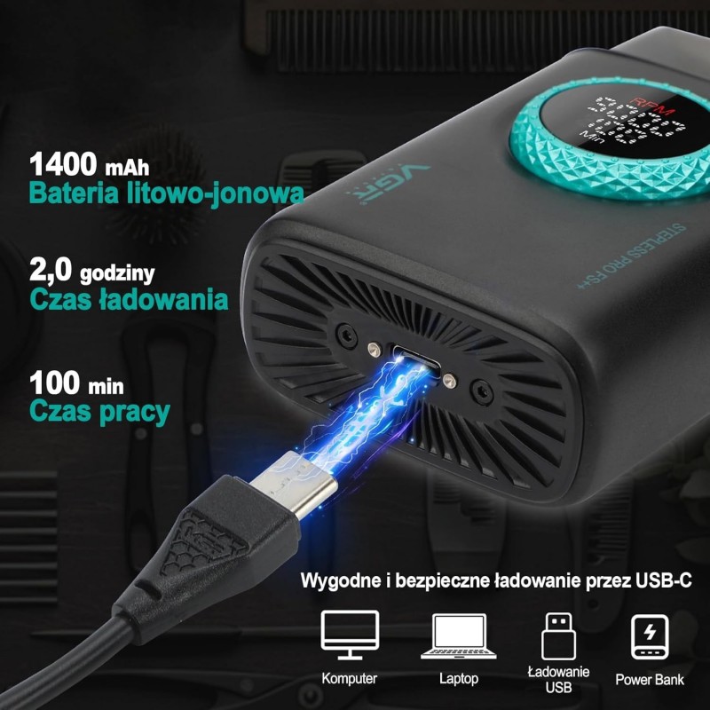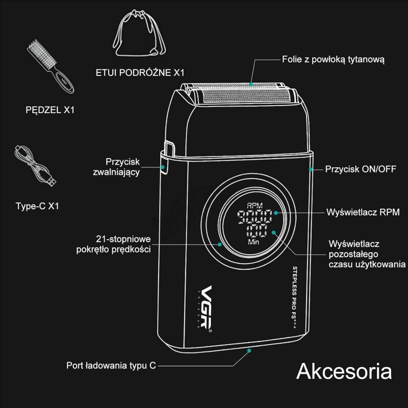 Wydajność trzech ostrzy: Golarki elektryczne VGR 378 są wyposażone w wytrzymały system trzech ostrzy ze stali nierdzewnej.